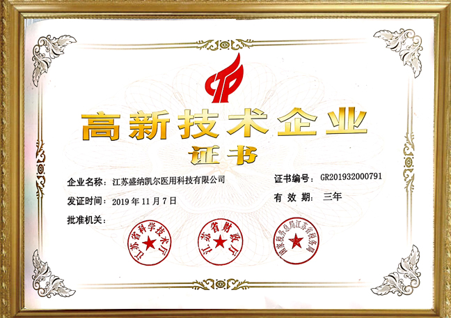 江蘇盛納凱爾醫(yī)用科技有限公司成立于2011年,位于江蘇省如東經(jīng)濟(jì)開發(fā)新區(qū),是一家集研發(fā)、制造、營銷、服務(wù)于一體的高科技股份制公司。公司占地面積120畝,建筑面積20310㎡,建有十萬級(jí)凈化生產(chǎn)車間、產(chǎn)品生物/化學(xué)/物理三項(xiàng)指標(biāo)檢驗(yàn)室、原料及成品標(biāo)準(zhǔn)化倉儲(chǔ)系統(tǒng)。公司主要產(chǎn)品有口罩、一體式吸氧管、一次性使用無菌敷貼、體表導(dǎo)管固定裝置、一次性霧化吸入器等。2013年首批醫(yī)療器械產(chǎn)品上市,2015年獲得產(chǎn)品CE認(rèn)證,2016年成為國家高新技術(shù)企業(yè),江蘇省民營科技企業(yè)。獲得發(fā)明專利和實(shí)用新型專利證書共66項(xiàng)。