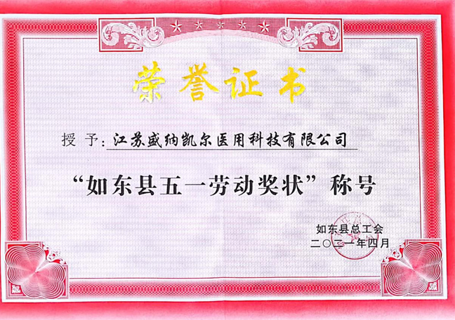 “如東縣五一勞動(dòng)獎(jiǎng)狀”稱號(hào)